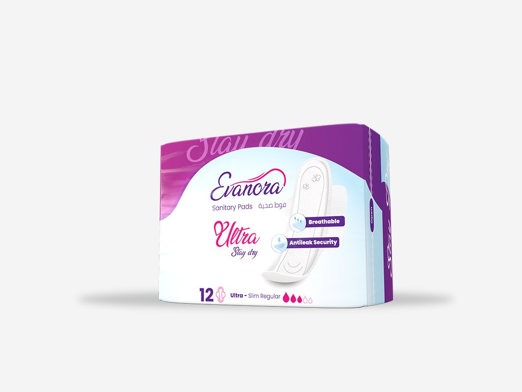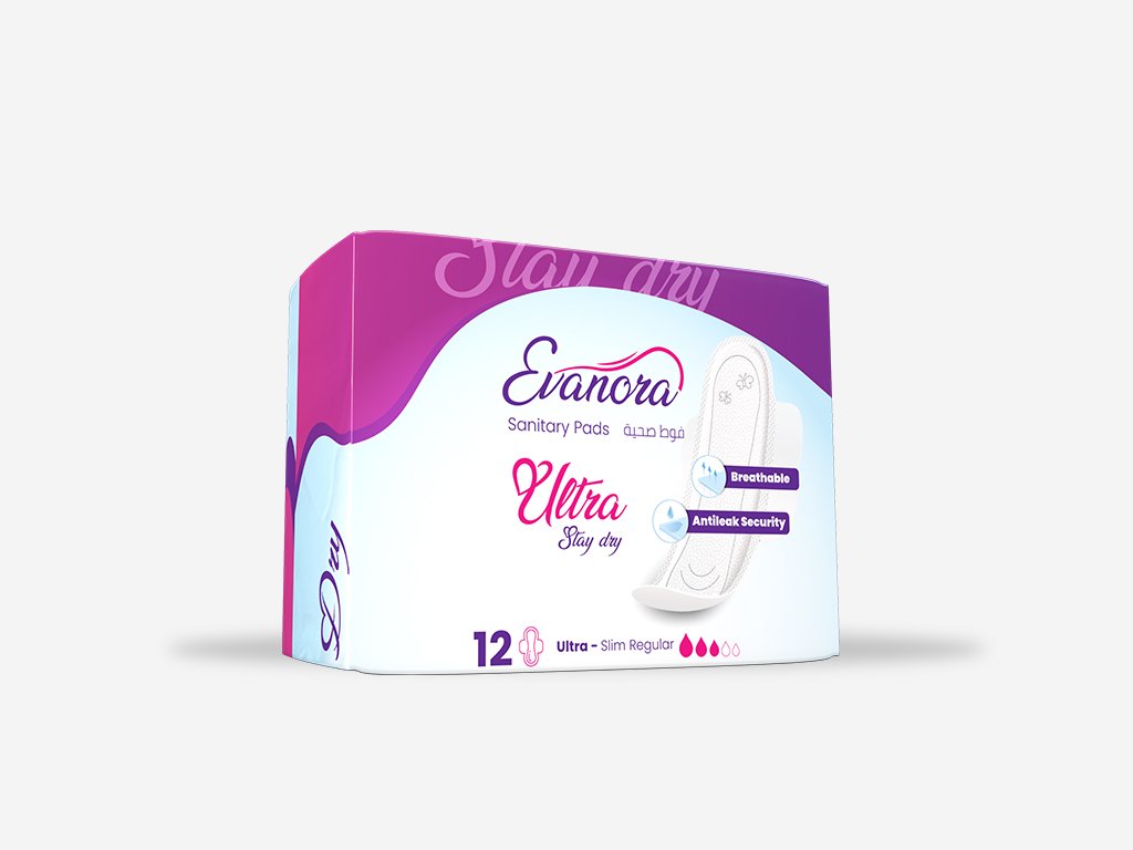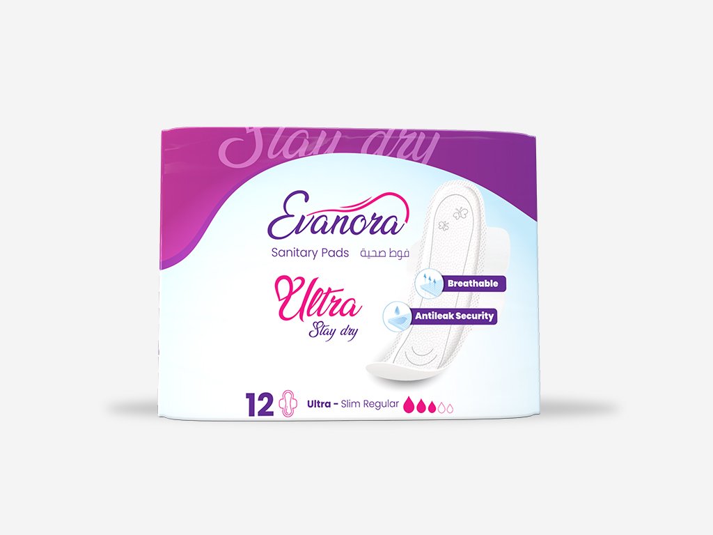 Evanora Ultra keeps you confidently dry throughout the day. With its regular length and soft, breathable design, it ensures all-day comfort, anti-leak protection, and secure fit with gentle wings. Size: 12 pads.